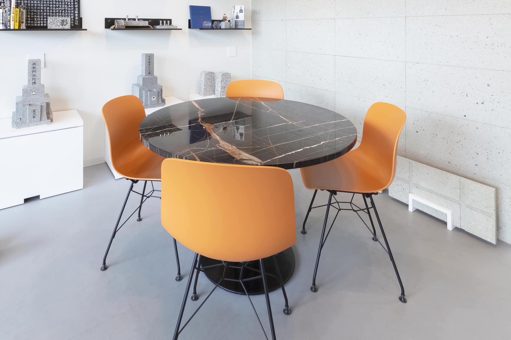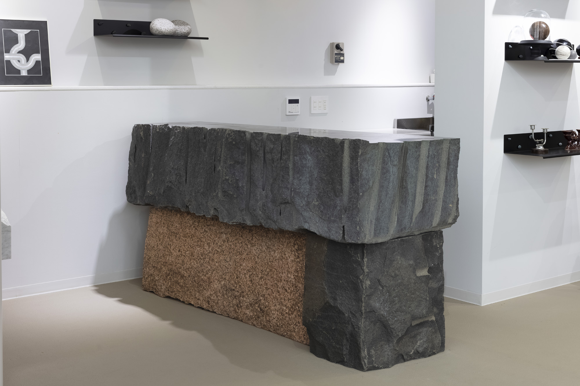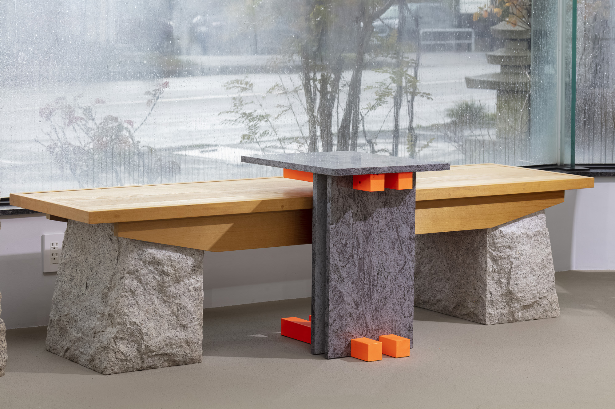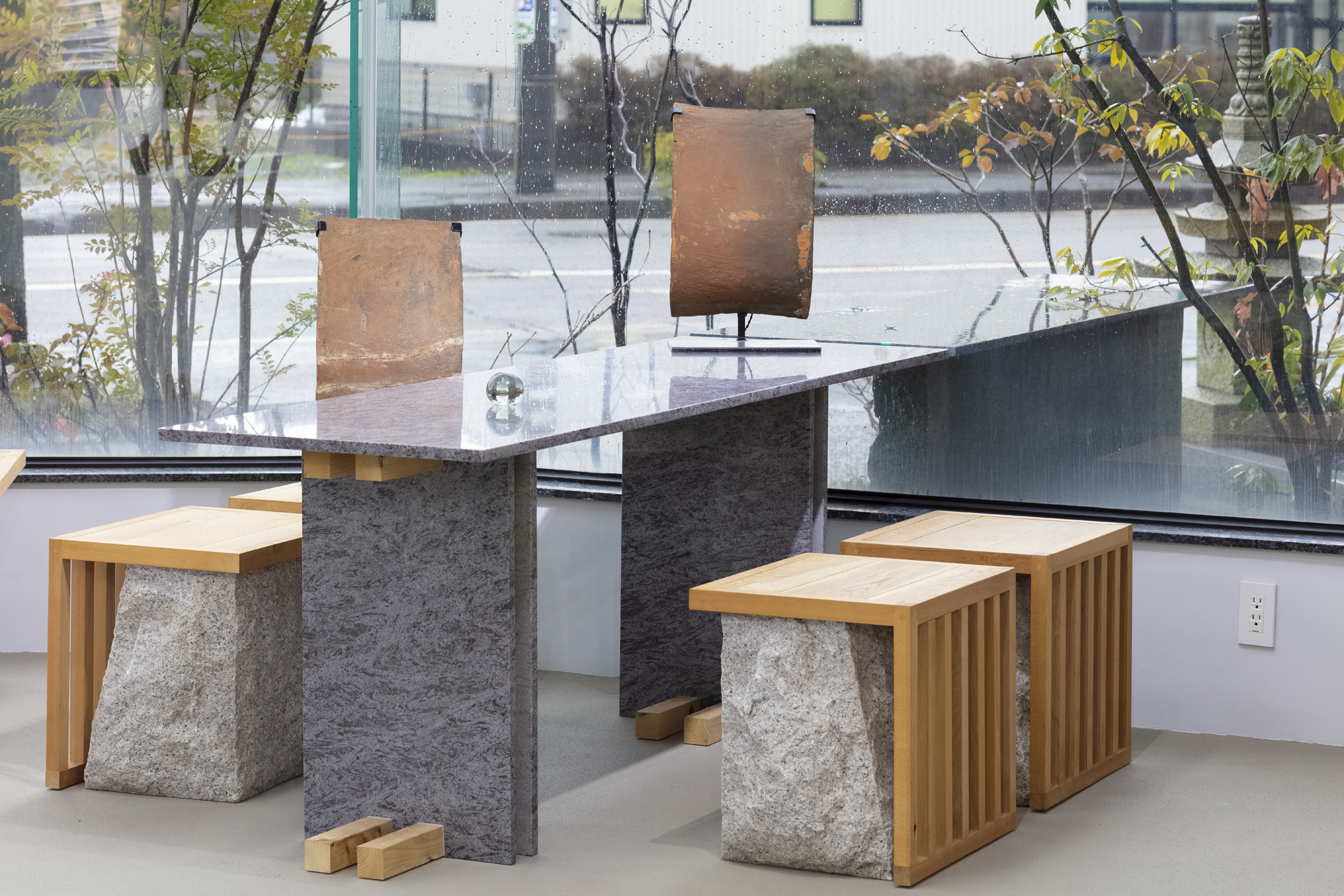 座板 / 檜 脚部 / 錆御影石 割肌仕上げ
